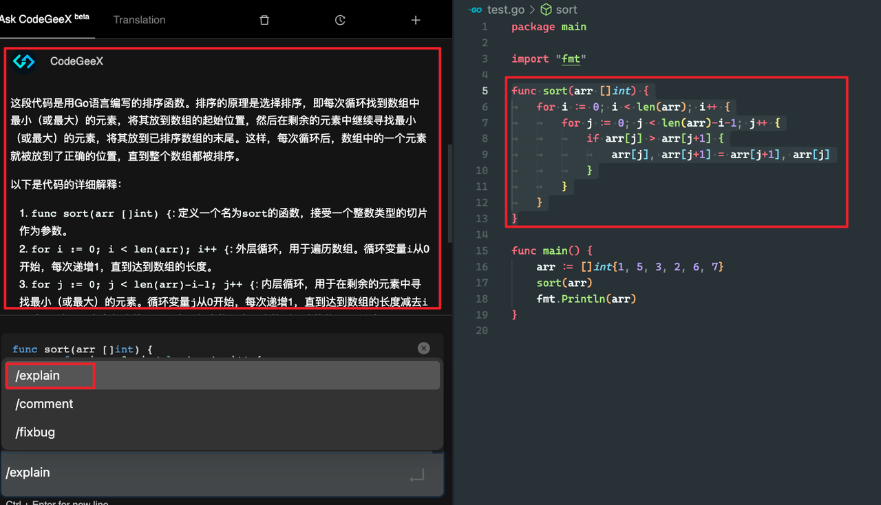 选中代码,然后聊天框中输入 /, 选择 /explain 回车,可以通过这个功能提升阅读源码的效率。